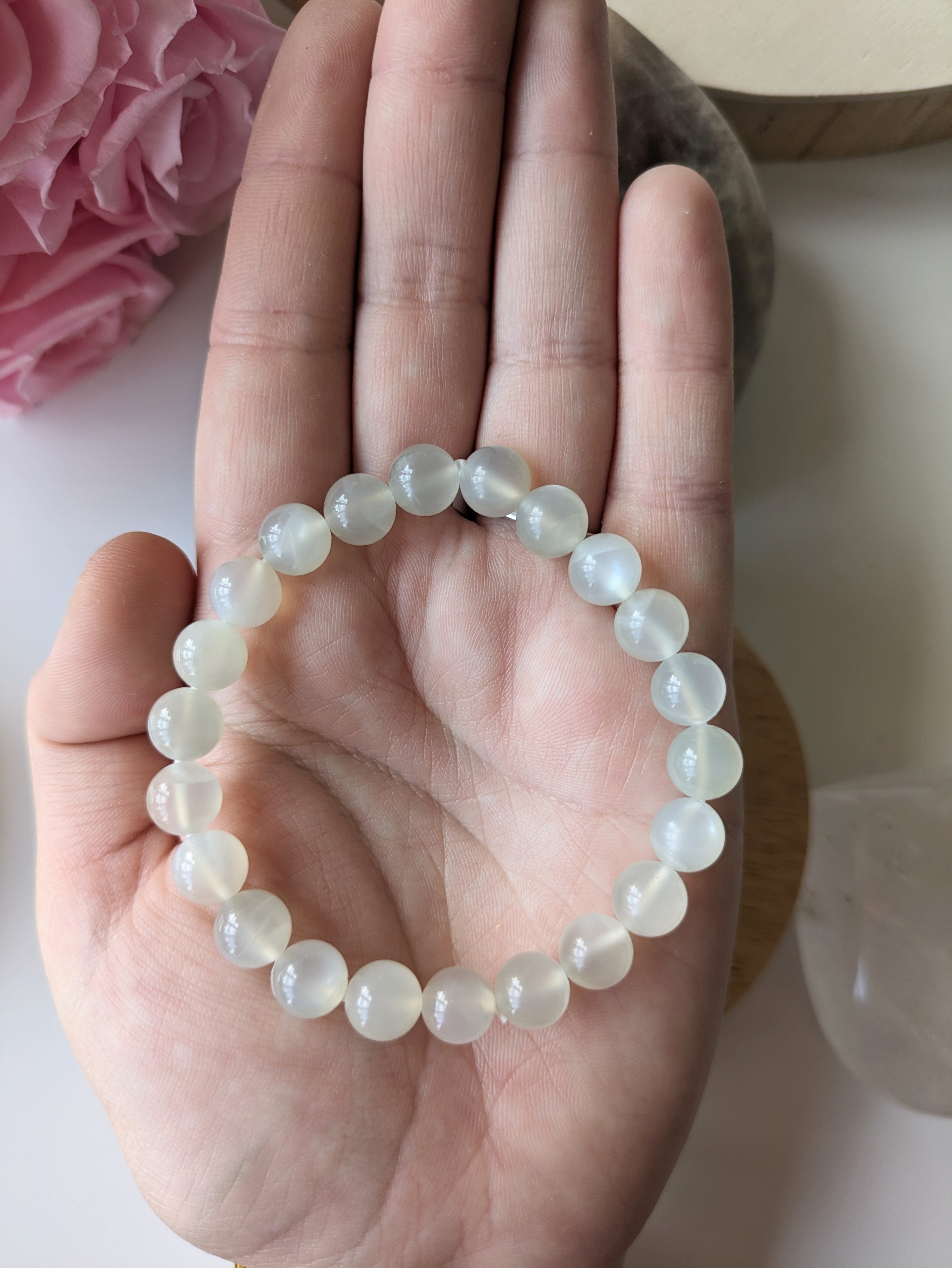 Unique, Tout Comme Vous : Chaque pierre de lune est une création naturelle unique, avec ses propres reflets et irisations. Comme tous les minéraux naturels, la Pierre de Lune peut présenter des variations qui témoignent de son origine géologique et de son authenticité. Ces caractéristiques naturelles ajoutent à sa beauté et à son charme authentiques.