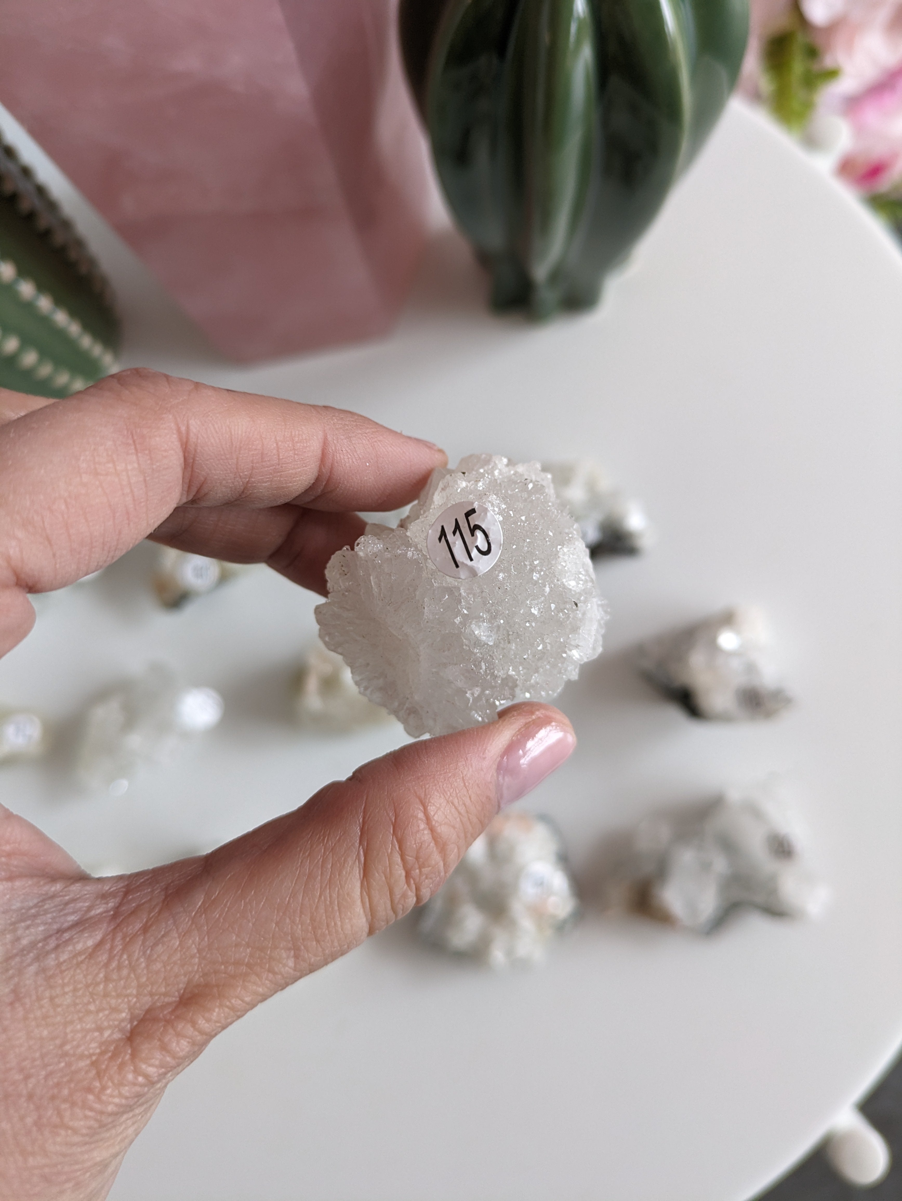 Commandez Votre Apophyllite Aujourd'hui: Faites le premier pas vers une vie illuminée par la lumière spirituelle. Commandez maintenant et ressentez la différence qu'une touche d'Apophyllite peut apporter à votre pratique spirituelle. Que vous choisissiez de la placer dans votre espace de méditation ou de l'utiliser dans vos rituels spirituels, l'Apophyllite est une source de clarté et de sérénité qui éclaire votre chemin spirituel.