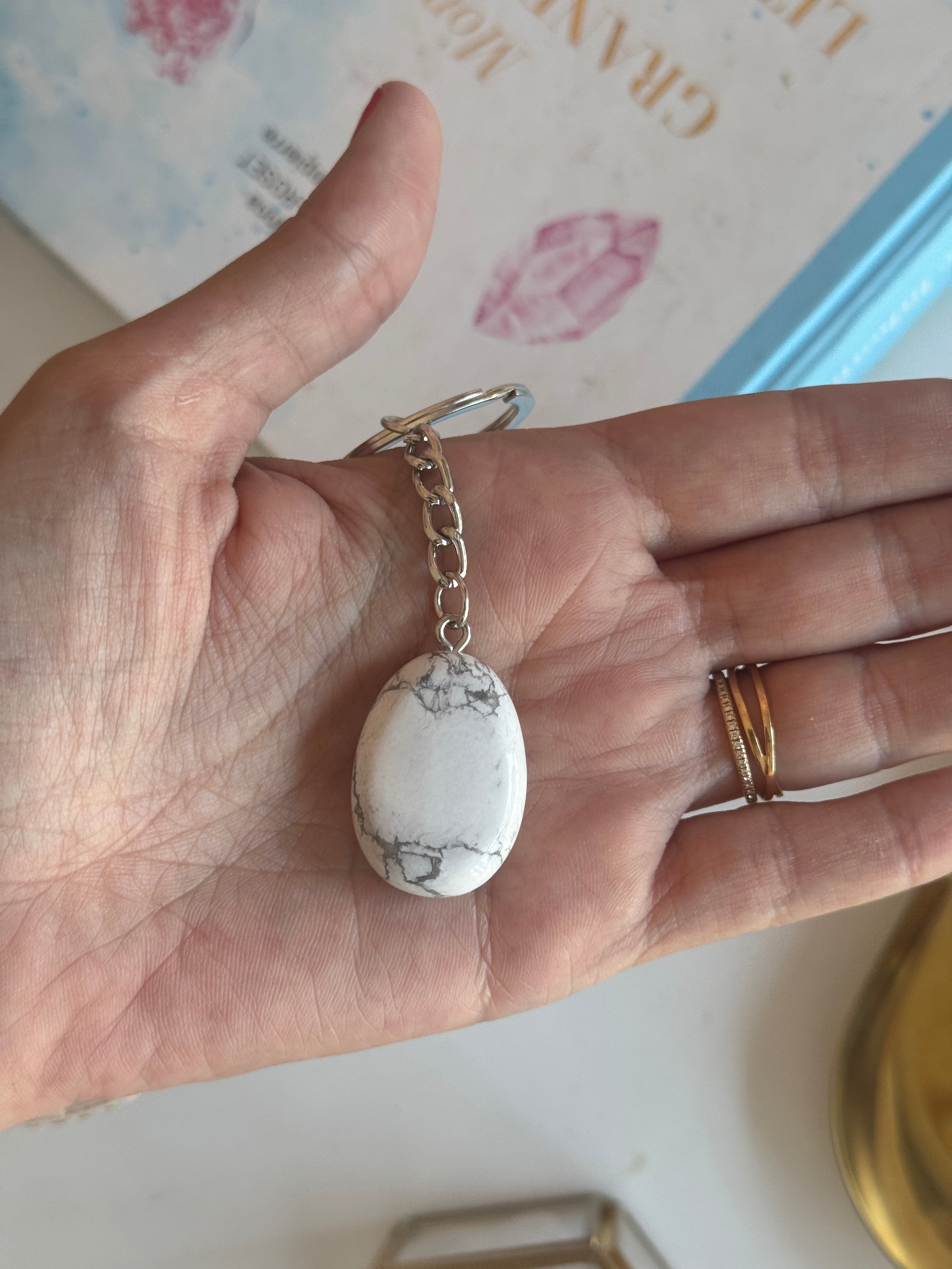 - Howlite : Pierre d’équilibre. Elle stabilise les émotions. C’est aussi une pierre efficace pour accompagner les régimes