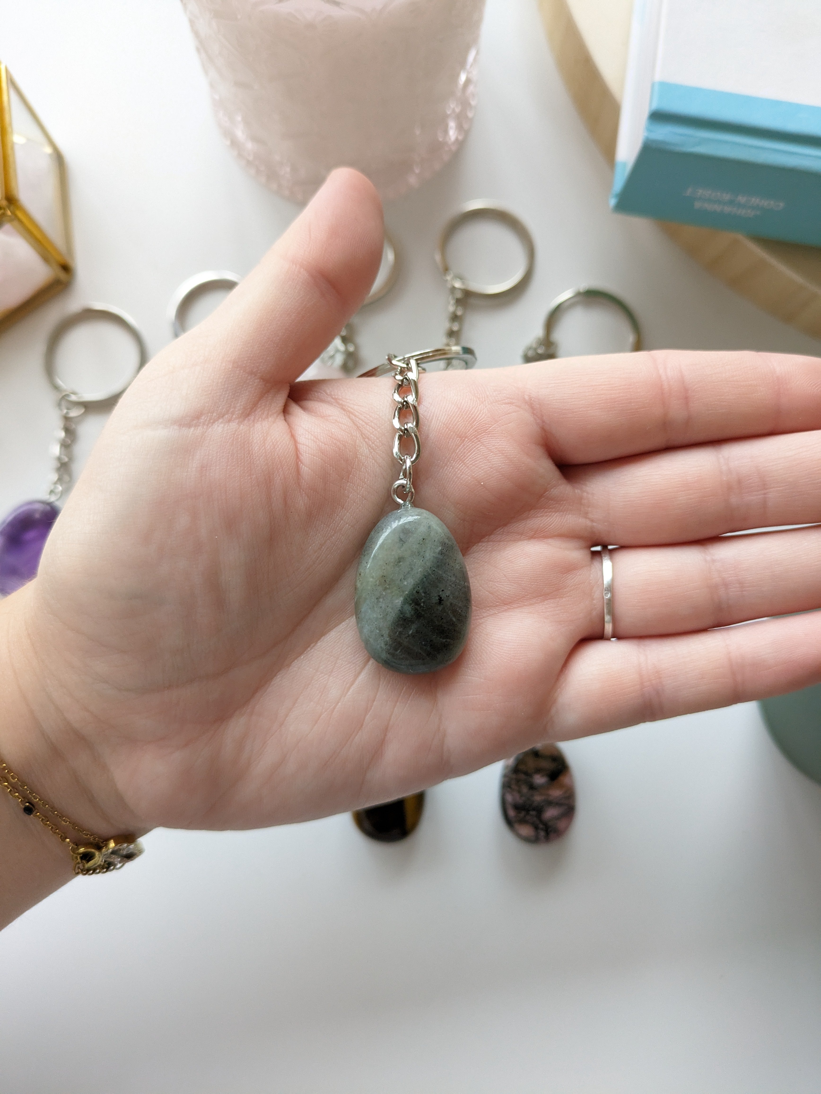 Merci de noter que les porte-clés en labradorite n’ont que très peu de reflets